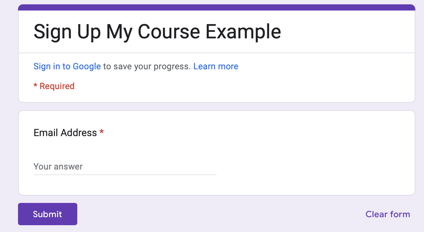 Here is the google form, nothing fancy, just the email address and submit button.